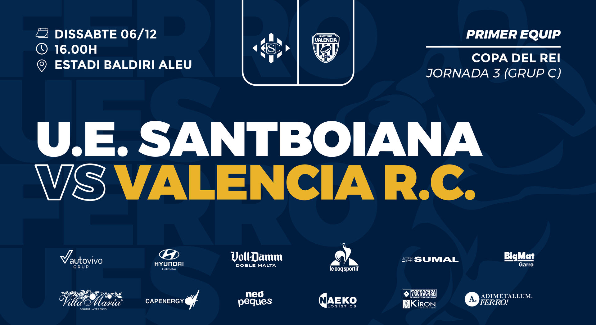 La U.E. Santboiana torna a la competició aquest dissabte a les 16.00 h rebent al Baldiri Aleu el Valencia R.C., en el que serà el primer partit del degà com a local en aquesta nova edició de la Copa del Rei. Després de descansar la passada jornada, els santboians afronten ara la 3a jornada de la fase de grups amb la necessitat de sumar la primera victòria del torneig.