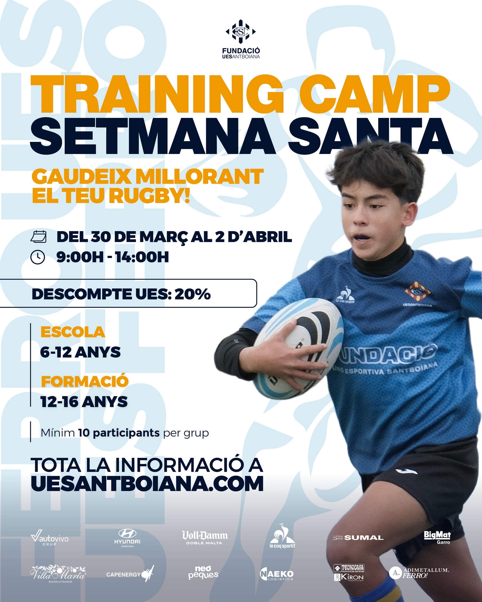 Aquesta Setmana Santa, la U.E. Santboiana organitza una nova edició del seu Training Camp en una experiència d’aprenentatge pensada per a nois i noies de 6 a 16 anys, amb un programa específic adaptat a cada etapa formativa.