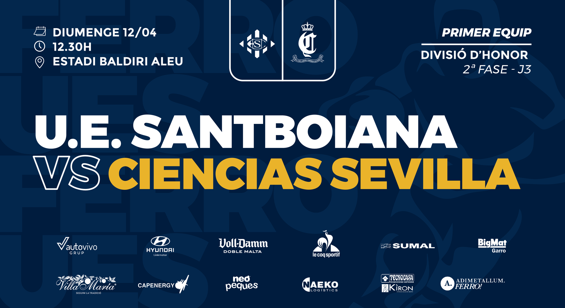 La U.E. Santboiana disputa aquest diumenge 12 d’abril a les 12.30h el partit més important dels últims anys. El degà rep al Baldiri Aleu el Real Ciencias de Sevilla en un duel directe per la permanència a la Divisió d’Honor.