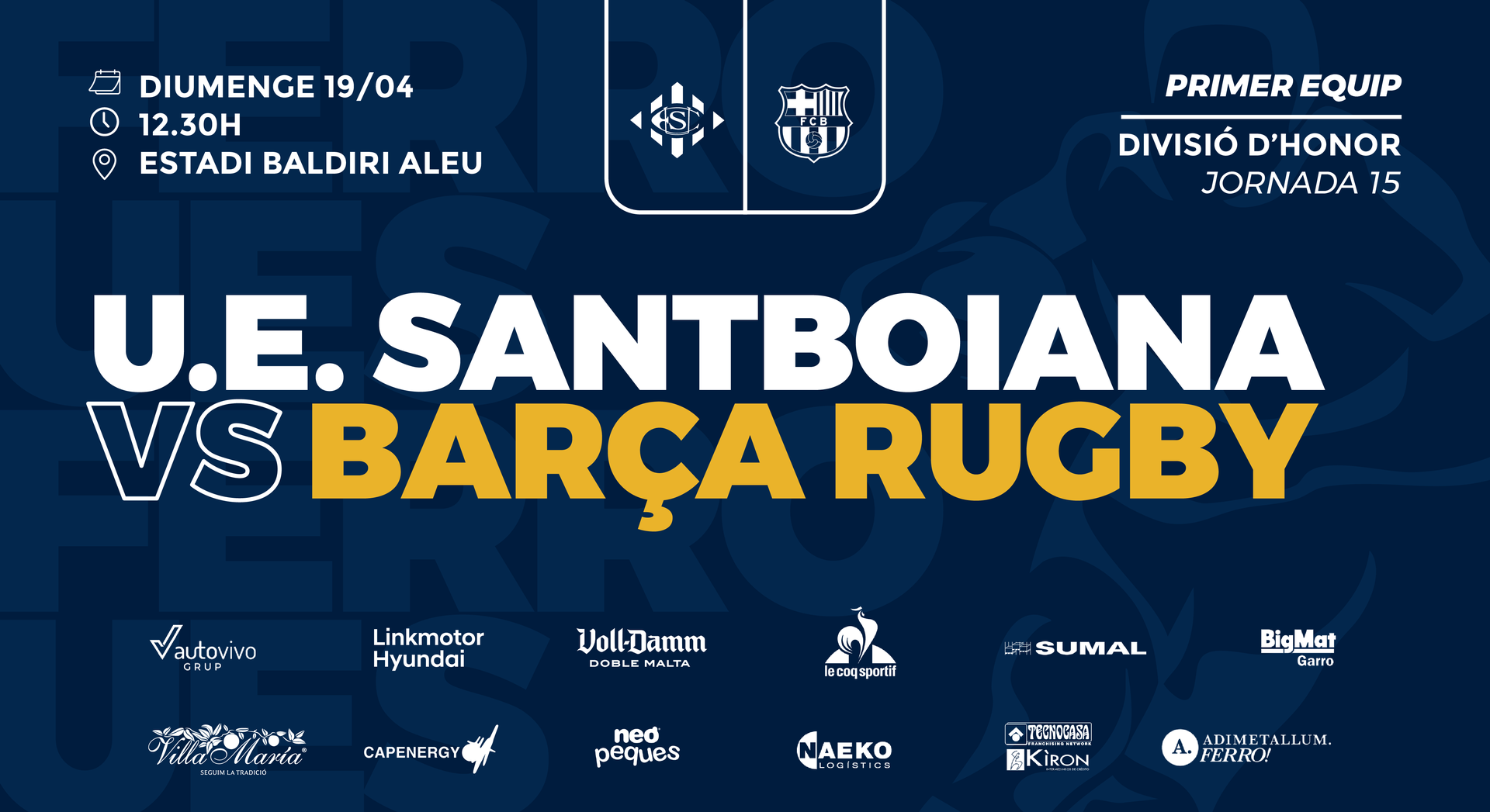 La U.E. Santboiana afronta aquest diumenge el partit més important de la temporada. El degà es juga la permanència a la Divisió d’Honor Masculina a l’última jornada de Lliga, rebent al Baldiri Aleu al Barça en un Derbi Català que decidirà el futur immediat del club a la màxima categoria del rugby estatal.