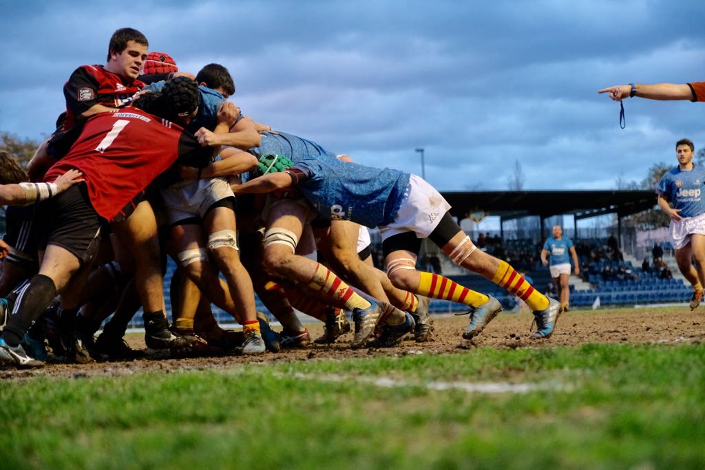 El partido frente al Sant Cugat tuvo dos caras muy distintas, la primera parte fue de la Santboiana que a la diferencia de otros partidos materializaba  cualquier ocasión de puntuar. El el minuto 11, Daniel Gasca robaba  un balón en su 22 y tras recorrer el campo entregaba la marca a Sergio Ruiz-Herrera.  En el minuto 23, tras varias fases de juego el mismo Sergio Ruiz-herrera entrando con verticalidad rompía tres placajes y posaba el balón en zona de marca. En una jugada similar, Marc Vilar ofrecía el balón de nuevo al ala gaditano quién arrollaba a su contrario  y conseguía su particular hat trick. Con la transformación de Morgan Ball, el marcador subía a 22-10.