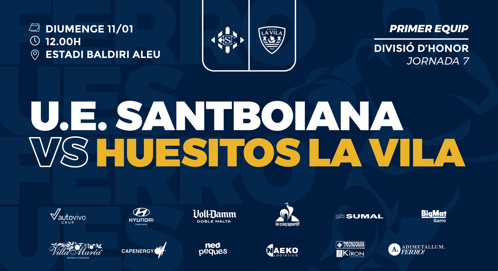 El Primer Equip Masculí de la U.E. Santboiana obre aquest diumenge el 2026 amb un partit de màxima importància al Baldiri Aleu, on rebrà La Vila R.C. en el duel corresponent a la setena jornada de la Divisió d’Honor.